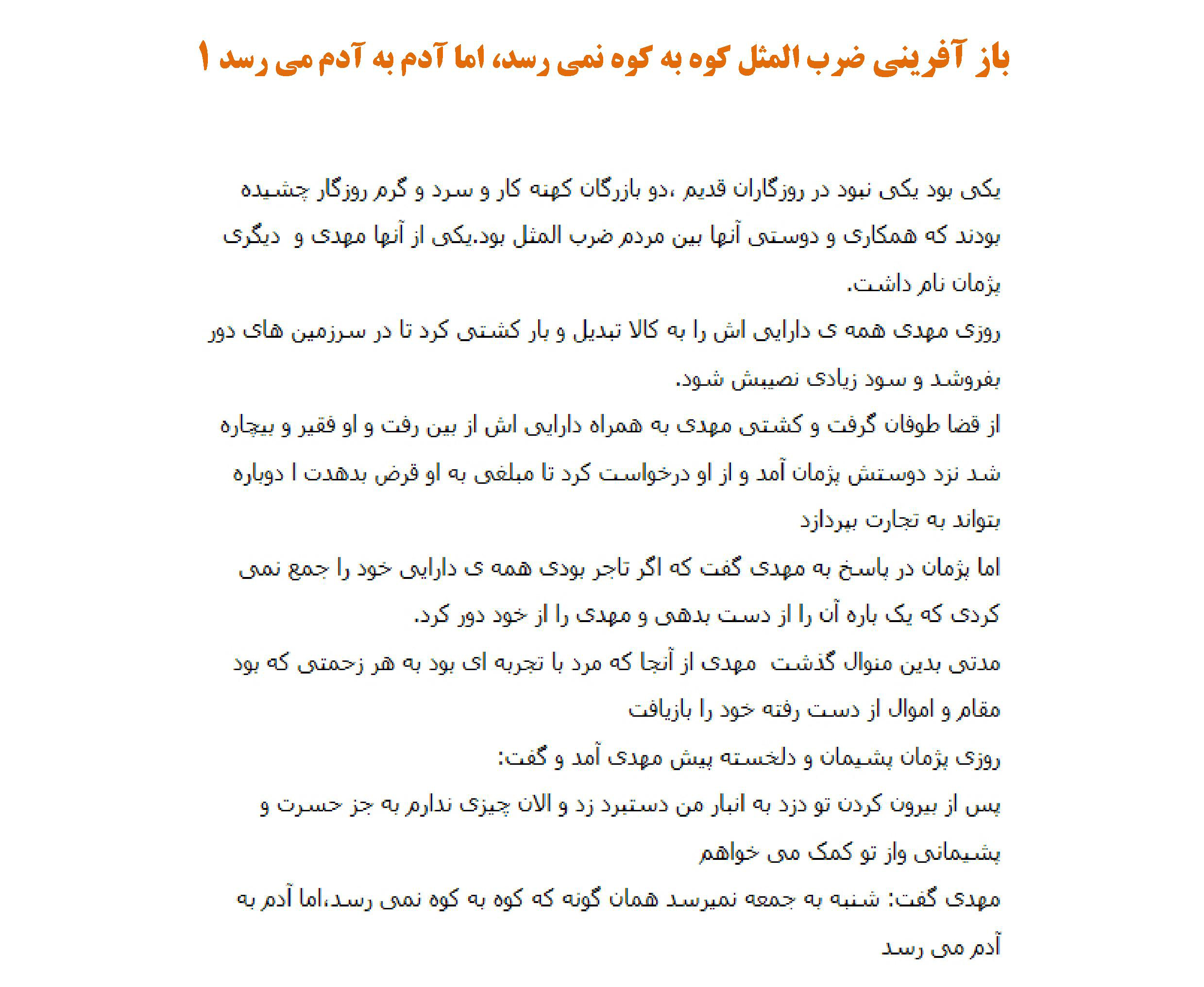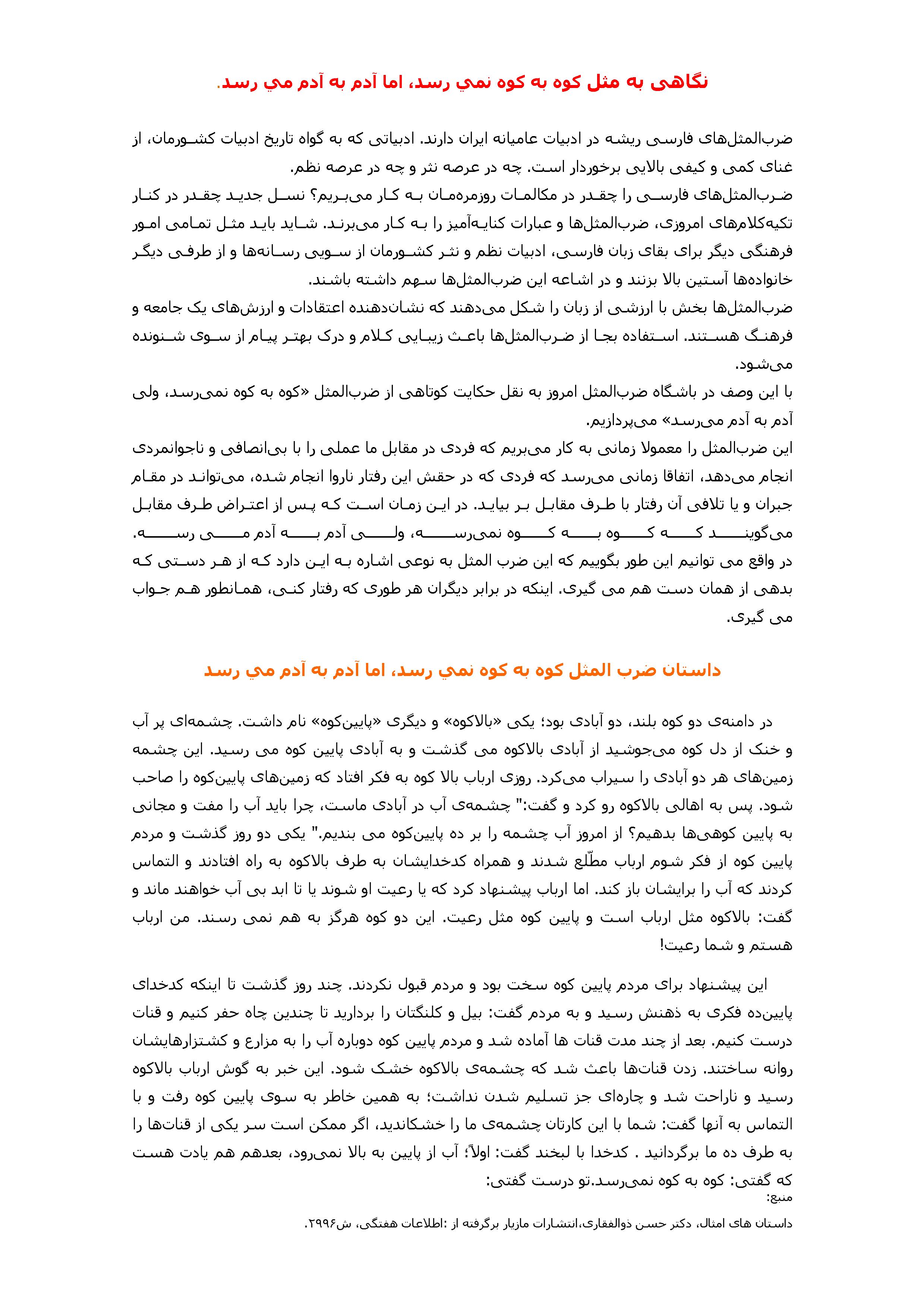 نگاهی به مثل کوه به کوه نمی رسد آدم به آدم می رسد