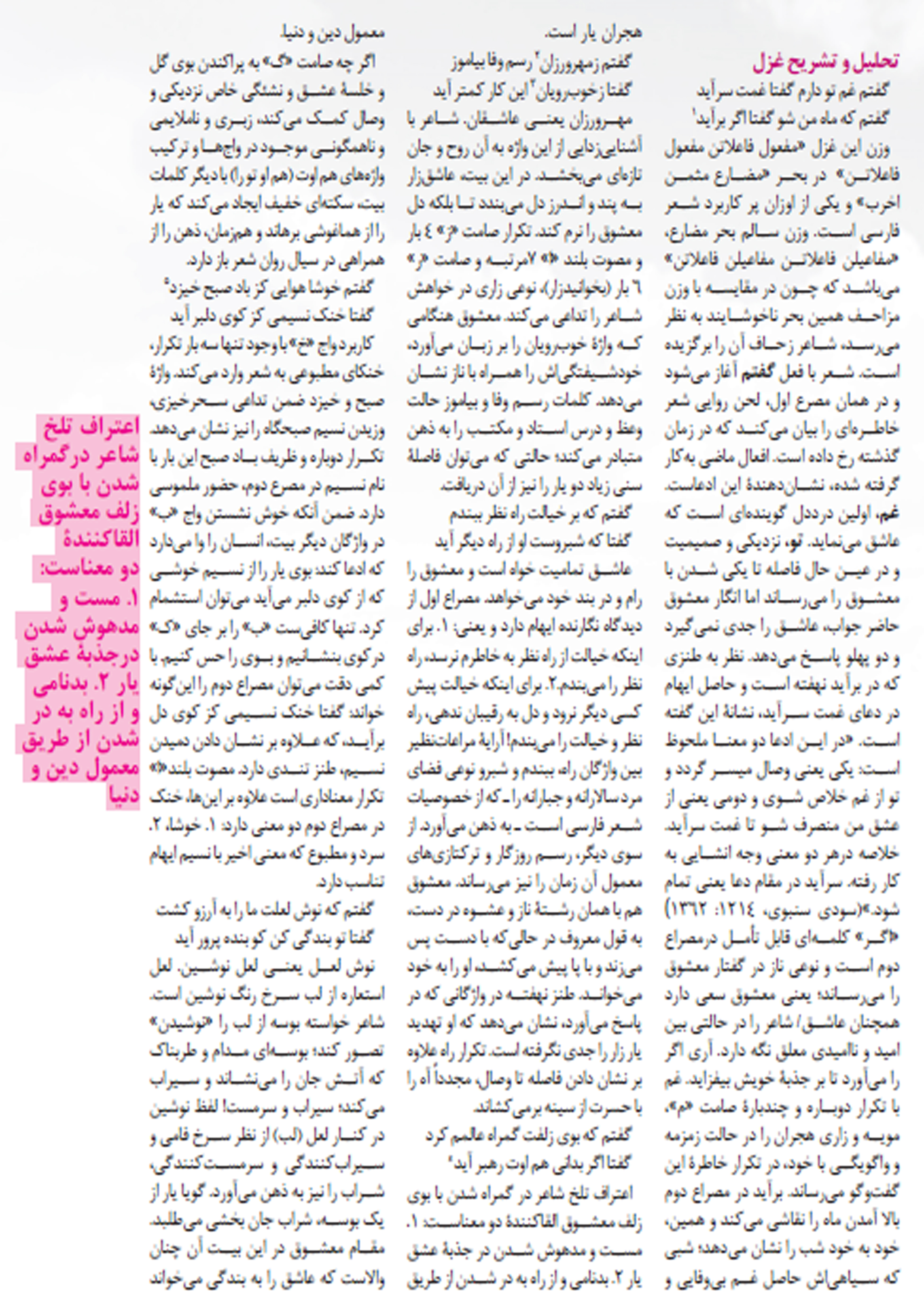 تحلیل و تشریح غزل گفتم غم تو دارم